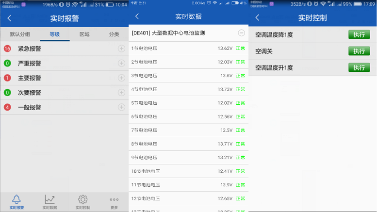 動環(huán)模塊是針對機(jī)房動力環(huán)境系統(tǒng)進(jìn)行數(shù)據(jù)對接,從動環(huán)監(jiān)控系統(tǒng)中獲取監(jiān)控參數(shù)并對配置選擇參數(shù)進(jìn)行瀏覽,實(shí)現(xiàn)查看實(shí)時(shí)報(bào)警、實(shí)時(shí)數(shù)據(jù)、查看控制記錄、歷史報(bào)警并且可對設(shè)備進(jìn)行實(shí)時(shí)控制。此模塊由PC端對接動環(huán)系統(tǒng)數(shù)據(jù),選擇設(shè)定用戶較關(guān)心的設(shè)備及參數(shù),在移動端進(jìn)行顯示。