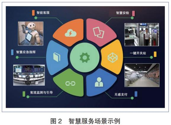 智慧的內(nèi)涵是感知、記憶、理解、分析、判斷、升華等能力,其在城市軌道交通行業(yè)里涉及最多的領(lǐng)域是服務(wù)與調(diào)度,如智慧客服、智慧安檢、智慧應(yīng)急指揮、一鍵開關(guān)站、客流監(jiān)測與引導(dǎo)、無感支付等(圖 2)。目 前,上海、廣州和深圳等城市的軌道交通率先建立了智慧車站示范站,在行業(yè)里起到了良好的帶動(dòng)作用。隨著中國城市軌道交通協(xié)會(huì)發(fā)布《中國城市軌道交通智慧城軌發(fā)展綱要》,其他城市也在加快智慧車站的研究和建設(shè)。