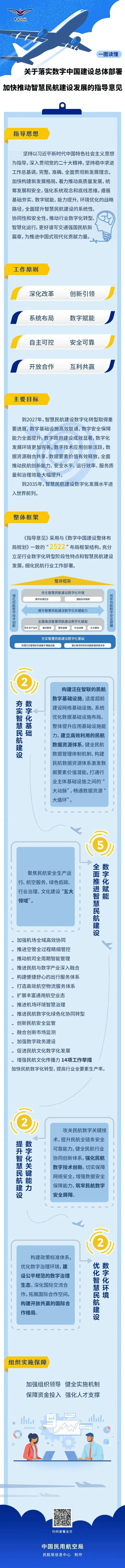 《指導(dǎo)意見》遵循了《數(shù)字中國建設(shè)整體布局規(guī)劃》“2522”整體框架,并充分立足行業(yè)數(shù)字化轉(zhuǎn)型階段性特點和智慧民航建設(shè)發(fā)展,細化了“2522”民航行業(yè)工作部署,即夯實數(shù)字基礎(chǔ)設(shè)施和數(shù)據(jù)資源體系“兩大基礎(chǔ)”,數(shù)字化賦能民航安全生產(chǎn)、航空服務(wù)、綠色發(fā)展、政府監(jiān)管、行業(yè)文化“五個重要領(lǐng)域”,強化民航數(shù)字技術(shù)創(chuàng)新和筑牢民航數(shù)字安全屏障“兩大核心動力和基本保障”,優(yōu)化數(shù)字治理生態(tài)和國際合作格局“兩大數(shù)字化環(huán)境”?!吨笇?dǎo)意見》還圍繞數(shù)字化賦能民航高質(zhì)量發(fā)展的五個重要領(lǐng)域提出了加強機場全域高效協(xié)同等14項工作舉措,加快民航數(shù)字化轉(zhuǎn)型,提高行業(yè)全要素生產(chǎn)率。