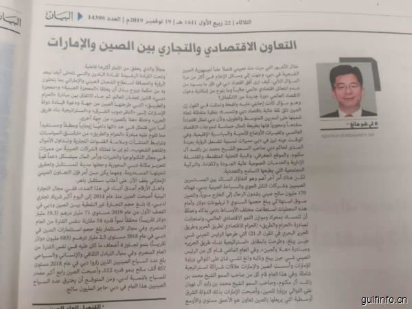 展望未來,我本人和中國駐迪拜總領(lǐng)館將深入落實(shí)兩國領(lǐng)導(dǎo)人達(dá)成的共識(shí),積極引導(dǎo)更多優(yōu)質(zhì)中資企業(yè)落戶迪拜,并全力支持迪拜及領(lǐng)區(qū)各酋長國抓住“一帶一路”合作機(jī)遇,不斷推動(dòng)雙方在貿(mào)易、投資、金融、基礎(chǔ)設(shè)施、旅游、文化、教育等領(lǐng)域開展更多更深更實(shí)的合作,將迪拜等酋長國打造成“一帶一路”上的璀璨明珠,共同開創(chuàng)中阿經(jīng)貿(mào)合作更加美好的未來。