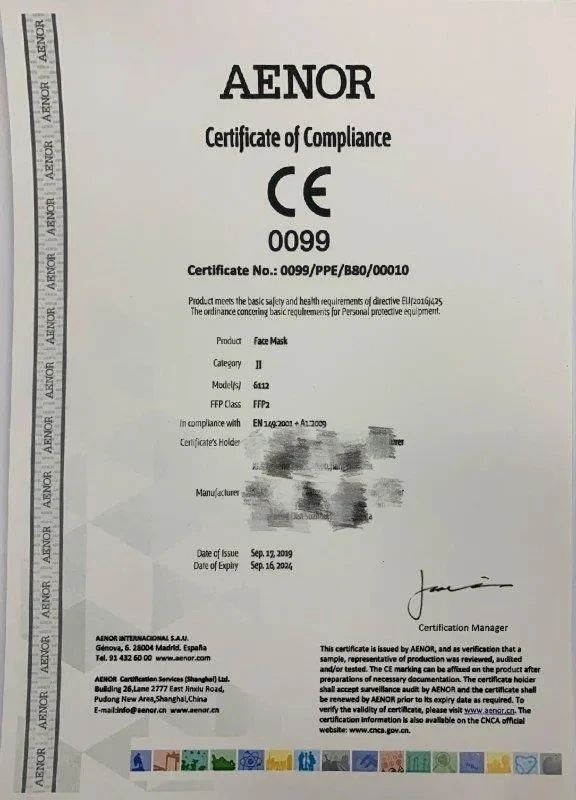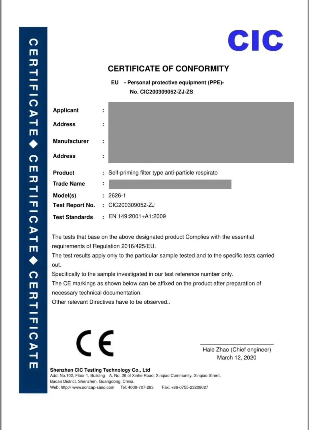 目前市場(chǎng)上流通的CE證書(shū)五花八門,企業(yè)很難判斷哪些是合法的,哪些是不符合歐盟法律規(guī)定的。在此CCQS將收集到的一些不符合歐盟法規(guī)的防護(hù)口罩CE證書(shū)進(jìn)行展示和分析,希望可以幫助大家掌握辨別的方法。以下證書(shū)來(lái)自于網(wǎng)絡(luò),CCQS僅基于歐盟相關(guān)法規(guī)要求進(jìn)行點(diǎn)評(píng)。