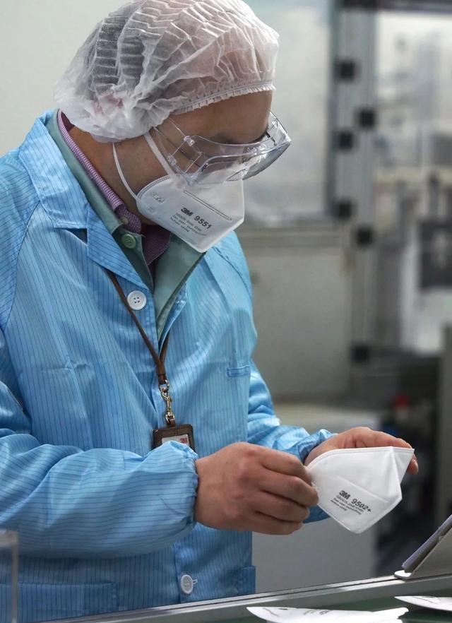 3月10日,3M中國(guó)公司漕河涇工廠KN95口罩生產(chǎn)線上,工作人員抽檢口罩質(zhì)量。