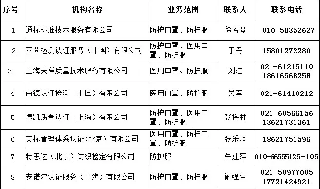 三、中國境內具有口罩等防疫用品CE認證能力的認證機構名錄