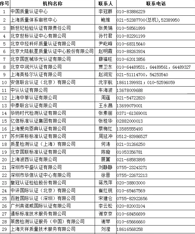 四、中國境內可以開展醫(yī)療器械管理體系(ISO13485)認證的機構名錄