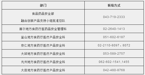 目前韓國食品藥品安全部正在進行快速許可,許可審查部門的聯(lián)系方式如下:(聯(lián)系以獲取進口業(yè)務(wù)報關(guān)單和產(chǎn)品授權(quán)書,并迅速處理進口要求。)