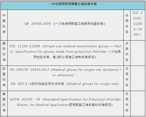 3、一次性使用醫(yī)用聚氯乙烯檢查手套國內(nèi)外標準比對