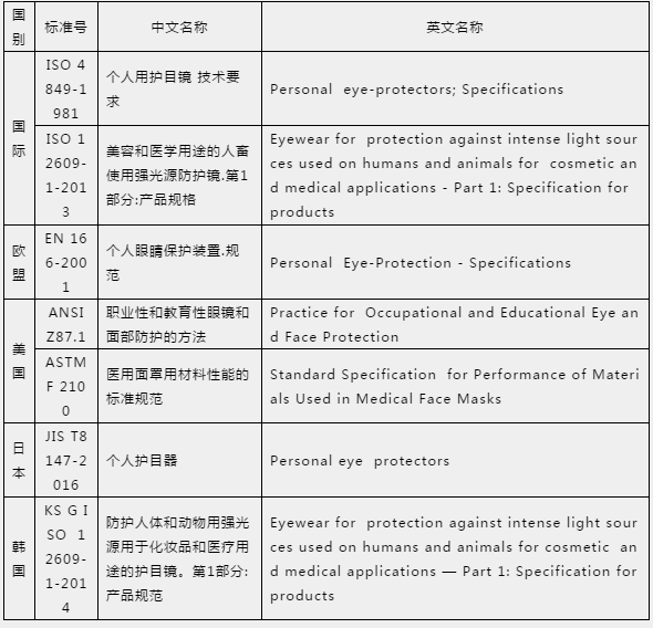 各國護目鏡技術(shù)標準