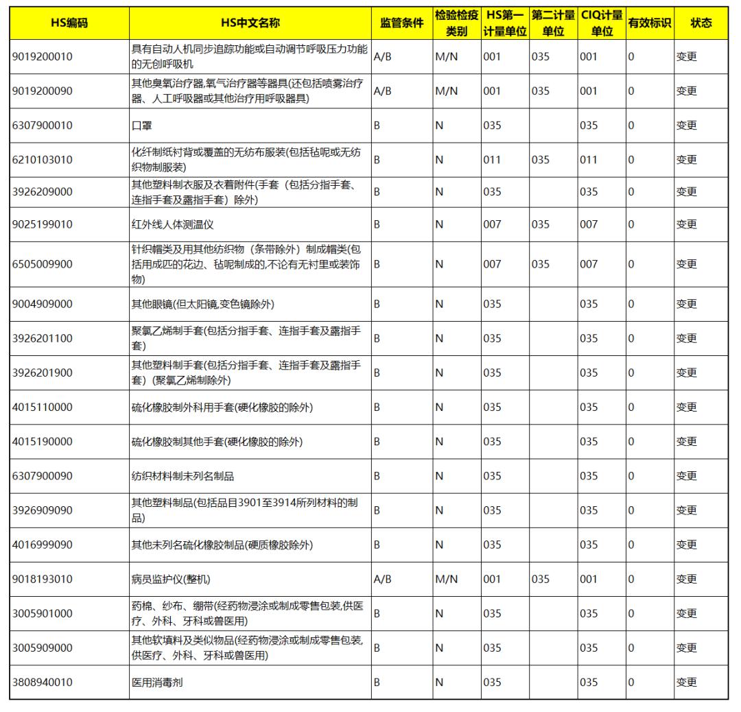 04月10日00:01系統(tǒng)更新了,19個(醫(yī)療物資)商品編碼項(xiàng)下實(shí)施出口法檢。