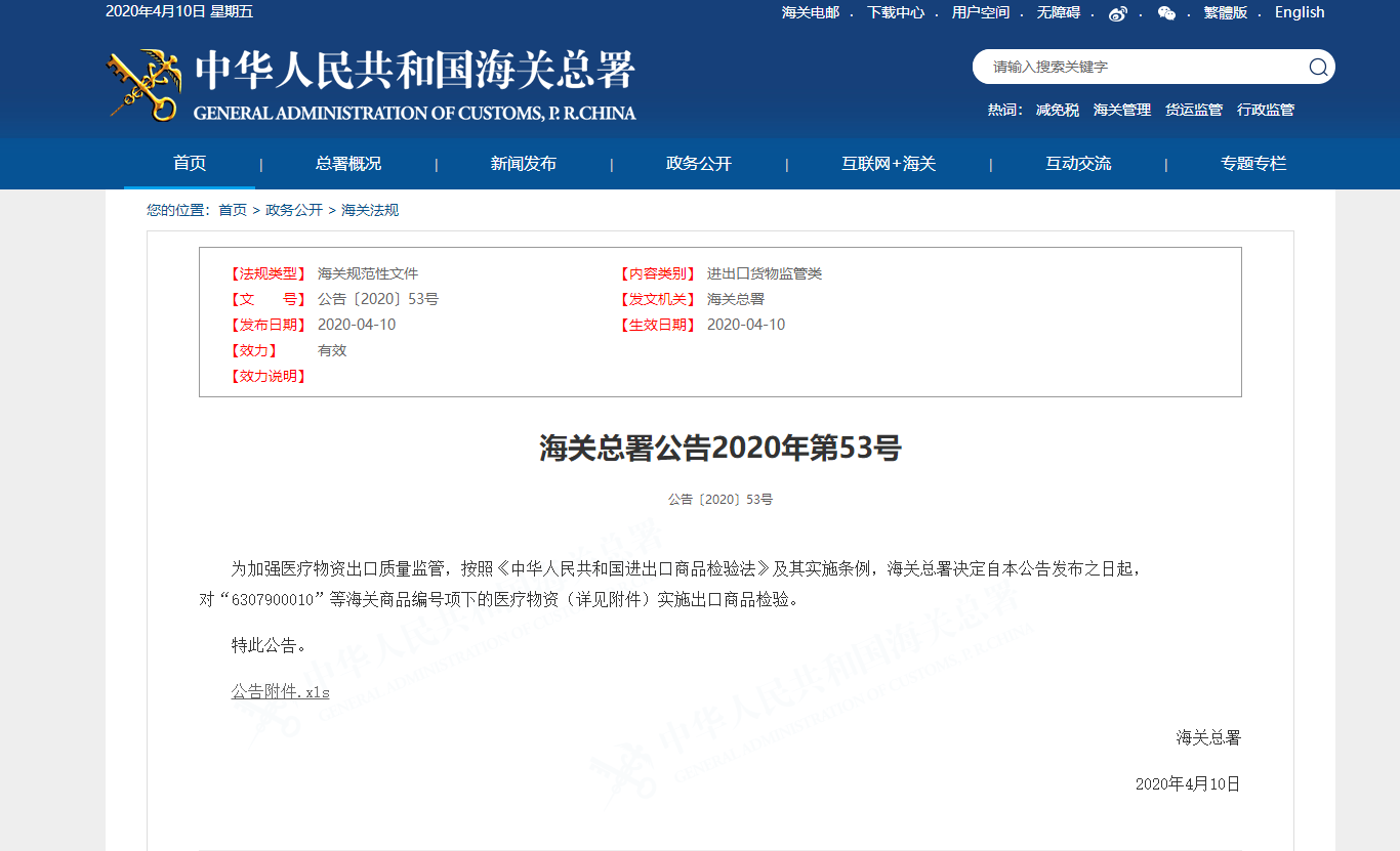 不過隨著海關(guān)第53號公告的出爐,一切都塵埃落地,口罩等醫(yī)療物資確定列入出口商品檢驗(yàn)。