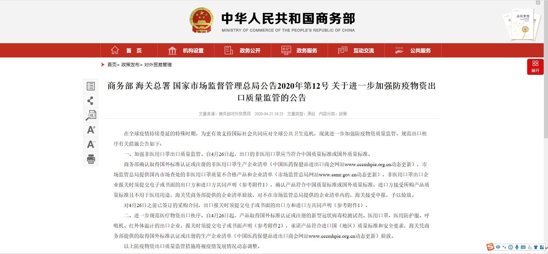 這次三部委在周六傍晚突然出臺的這份12號公告,是對以口罩為主的防疫物資出口祭出的最為嚴(yán)格的措施!那么這到底會對防疫物資出口造成怎樣的影響呢?就讓我們一起來看看吧。