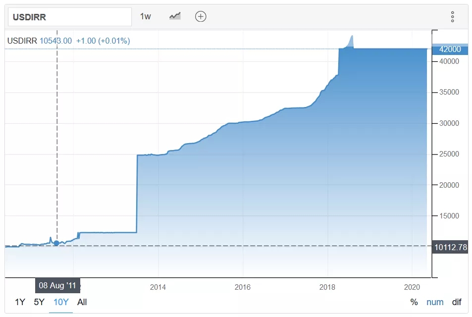 特別是自2018年5月,美國(guó)總統(tǒng)特朗普宣布退出伊核協(xié)議并分階段重啟了對(duì)伊朗的制裁以來(lái),伊朗里亞爾兌美元的貶值速度越來(lái)越快。