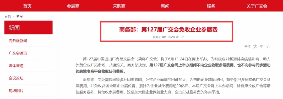 另,廣交會網(wǎng)站也已于5月8日同步更新消息: