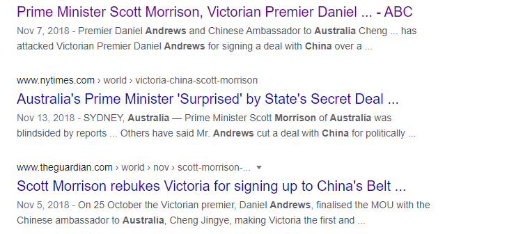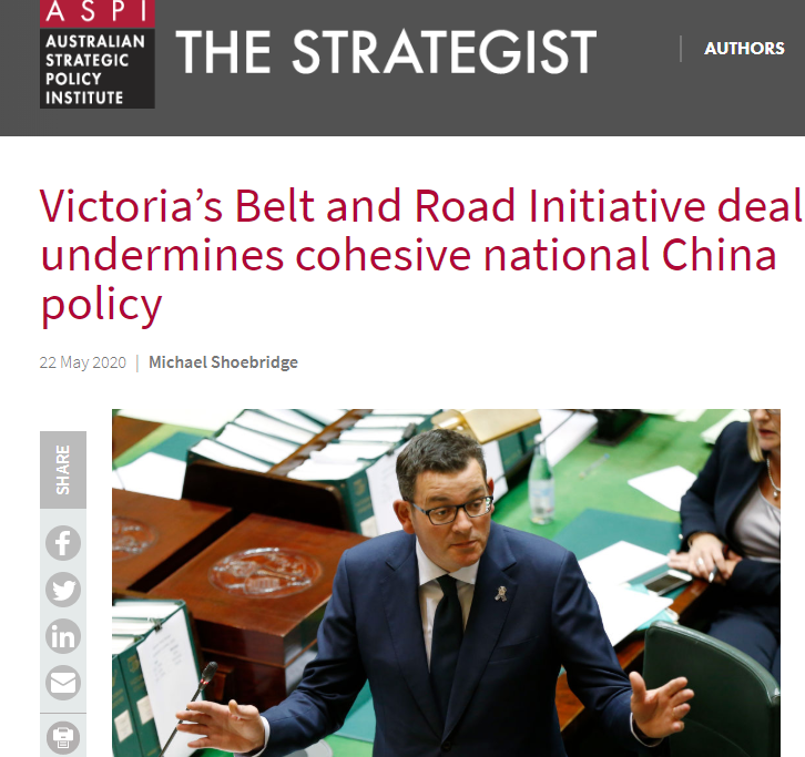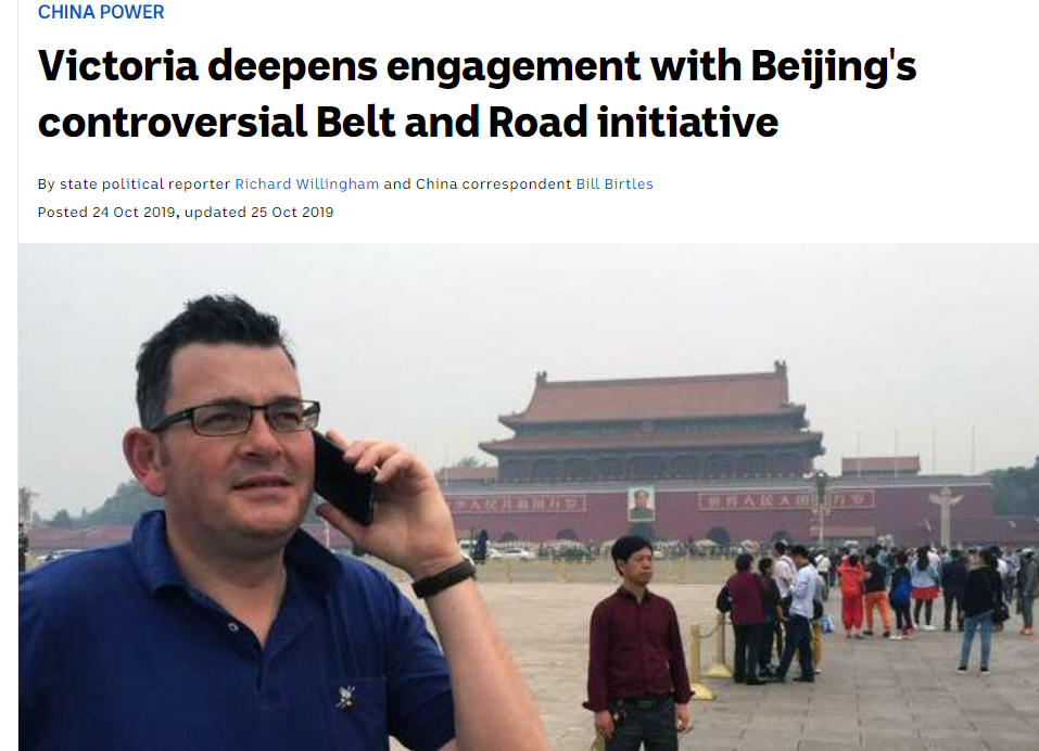 (圖為去年維州進一步推進與中國的一帶一路合作后,澳大利亞廣播公司撰文攻擊該州的報道)