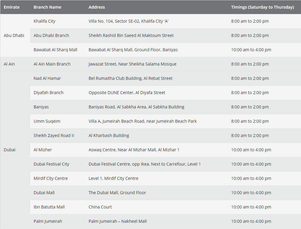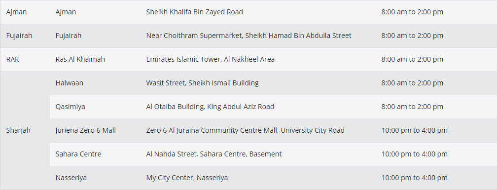 在此為各位附上阿聯(lián)酋伊斯蘭銀行各分行支點(diǎn)地址: