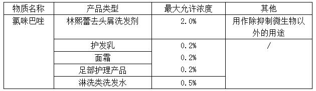 氯咪巴唑目前作為防腐劑在化妝品中使用,最大允許濃度為0.5%,而作為非防腐劑成分添加時(shí),其濃度也須符合上述條款限值。歐盟消費(fèi)者安全科學(xué)委員會(huì)(SCCS)對(duì)其進(jìn)行評(píng)估,認(rèn)為當(dāng)氯咪巴唑作為防腐劑在面霜、護(hù)發(fā)乳、護(hù)足類化妝品中使用,最大濃度應(yīng)為0.2%;當(dāng)氯咪巴唑作為去頭屑成分在淋洗類洗發(fā)劑中使用,最大濃度應(yīng)為2.0%。基于SCCS的意見(jiàn),歐盟認(rèn)為現(xiàn)行的氯咪巴唑監(jiān)管條款限值(0.5%)會(huì)對(duì)人體健康構(gòu)成潛在風(fēng)險(xiǎn),需要做進(jìn)一步限制。具體修改內(nèi)容如下: