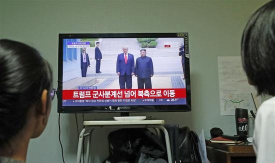 當(dāng)天,特朗普跨過(guò)軍事分界線,在朝鮮領(lǐng)土短暫停留,隨后與金正恩一道,進(jìn)入板門(mén)店韓方一側(cè)會(huì)見(jiàn)韓國(guó)總統(tǒng)文在寅。