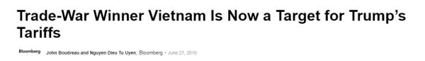 而關于越南為什么會被美國“瞄準”,彭博社在6月27日的報道中給出了一種猜想。“越南近期中美貿易戰(zhàn)‘大贏家’的名聲可能引起了美國總統(tǒng)特朗普不必要的關注”,報道稱。