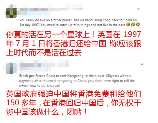 而讓英國網(wǎng)友都看不下去的,正是以亨特為首的一些英方人士近期屢屢就香港事務(wù)表達(dá)“關(guān)切”的行為。