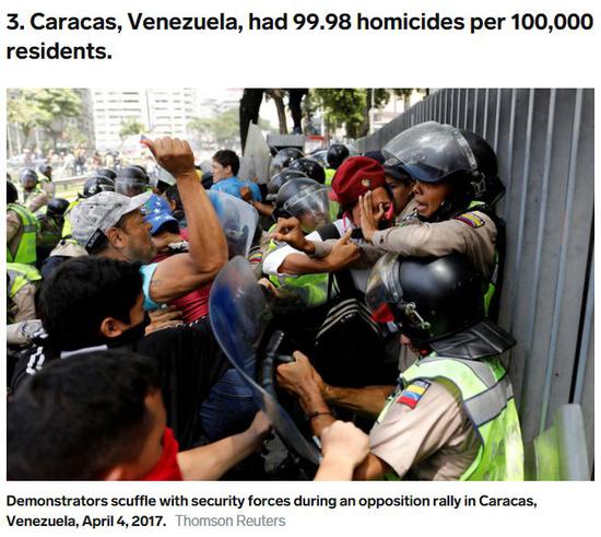 第3名委內(nèi)瑞拉加拉加斯,命案率99.98人/10萬: