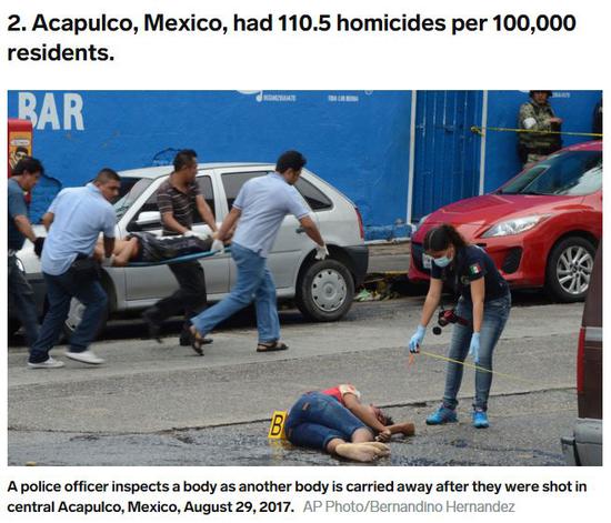 第2名墨西哥阿卡普爾科,命案率110.5人/10萬: