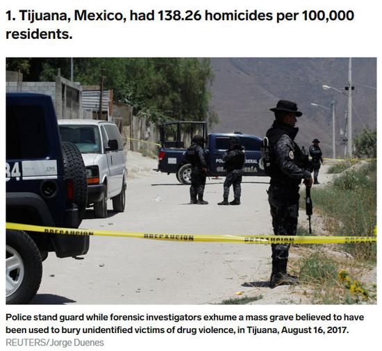 此外,美國本土也有4個城市上榜:Of the 50 cities on the list, 42 are in Latin America。 Fifteen were in Mexico, 14 in Brazil, and six in Venezuela。 Two Colombian cities were on the list, as were two Honduran cities, and El Salvador, Guatemala, and Jamaica all had one。