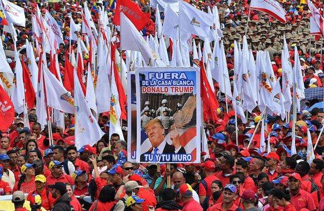 抗議者:不要破壞委內(nèi)瑞拉的和平,美國(guó)佬回你們國(guó)家去。不論你們制裁與否,我們委內(nèi)瑞拉人一定會(huì)繼續(xù)前進(jìn)。