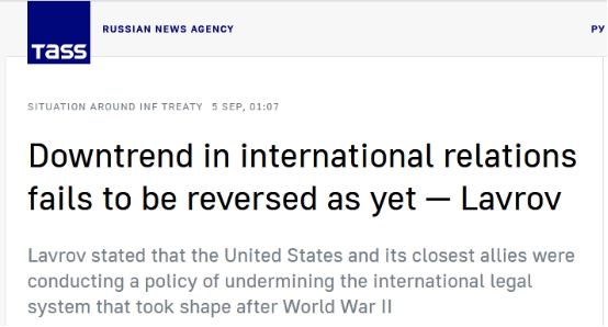 “這(種破壞)包括過(guò)去幾十年里(俄羅斯與美國(guó))在戰(zhàn)略穩(wěn)定和軍備控制方面達(dá)成的協(xié)議。21世紀(jì)初,《反彈道導(dǎo)彈條約》被(美國(guó))單方面終止。現(xiàn)在,《中導(dǎo)條約》也已失效。與此同時(shí),續(xù)簽《削減戰(zhàn)略武器條約》的前景也并不明朗”,拉夫羅夫總結(jié)說(shuō),二戰(zhàn)后以普遍共識(shí)為基礎(chǔ)建立的國(guó)際法體系正面臨著嚴(yán)峻的考驗(yàn)。