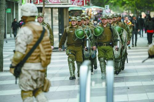 智利國防部長埃斯皮納稱,鑒于搶劫現(xiàn)象嚴(yán)重,軍方?jīng)Q定從20日起向圣地亞哥增派1500名士兵維持社會秩序。目前,超過9500名軍人和警察在首都地區(qū)保護(hù)供水、供電設(shè)施以及機(jī)場、地鐵站等,制止搶劫、縱火等非法行為。美國零售巨頭沃爾瑪方面表示,其位于智利境內(nèi)的60多家超市遭到不同程度的損毀,將關(guān)閉所有在智利的門店。