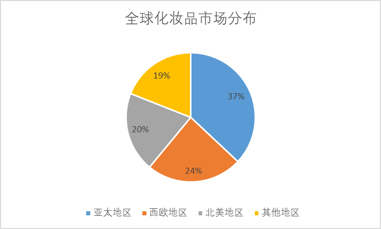 亞太市場是目前全球最大的化妝品消費市場,西歐、北美、拉美地區(qū)分列其后,目前亞太地區(qū)化妝品市場規(guī)模占全球總量的37%,西歐市場規(guī)模占比為24%,北美市場規(guī)模占比為20%。