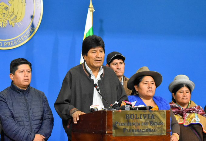 就在莫拉萊斯發(fā)出相關(guān)宣言前的幾個小時前,此前已介入此事的“美洲國家組織”(OAS)發(fā)布初步報告,聲稱無法證實莫拉萊斯在10月20日的選舉中獲勝,由于存在普遍的“違規(guī)行為”,選舉結(jié)果應(yīng)該被宣布無效。