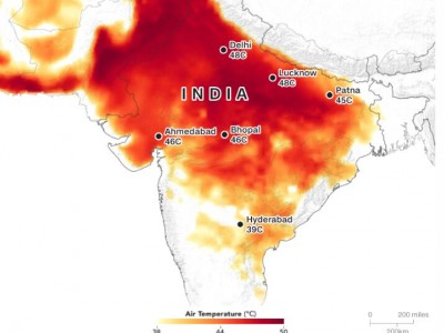 6月10日,新德里最高氣溫達(dá)到48攝氏度,是6月同期最高紀(jì)錄;而在拉賈斯坦邦的楚魯市,6月1日最高氣溫達(dá)到了創(chuàng)紀(jì)錄的50攝氏度。