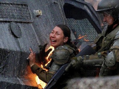 智利街頭示威仍未平息,11月4日,首都圣地亞哥又現(xiàn)“恐怖一幕”。兩名女警察驅(qū)趕示威者時(shí),被對(duì)方投擲的燃燒瓶擊中,兩人身上瞬間起火。