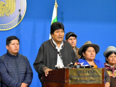 上月底,玻利維亞總統(tǒng)莫拉萊斯在爭(zhēng)議中宣布勝選,引發(fā)該國(guó)持續(xù)抗議和騷亂。莫拉萊斯表示將嘗試替換最高選舉法院成員,承諾重新進(jìn)行選舉。