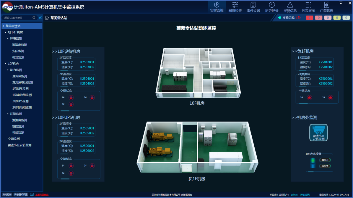 計(jì)通智能為汕頭雷達(dá)站搭建智慧空管綜合監(jiān)控平臺,將雷達(dá)站區(qū)域內(nèi)的所有設(shè)備監(jiān)控?cái)?shù)據(jù)進(jìn)行集中監(jiān)控管理,在實(shí)現(xiàn)防雷及動環(huán)系統(tǒng)集中監(jiān)控、集中管理、集中展示的運(yùn)維管理目的。系統(tǒng)具備較高的穩(wěn)定、可靠、安全的特性,提供7*24*365不間斷的系統(tǒng)監(jiān)控及運(yùn)行保障。