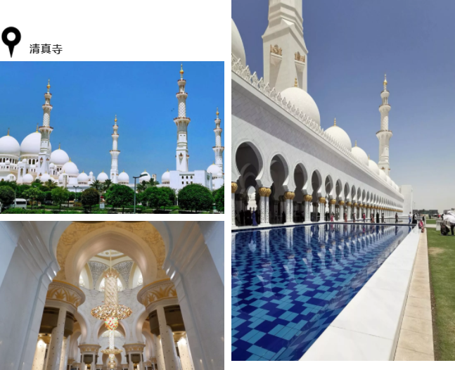 謝赫扎伊德大清真寺是為已故老國王扎伊德所建。寺內(nèi)有數(shù)以萬計(jì)的寶石鑲嵌,水晶珠寶吊燈,全世界最大手工地毯,整個(gè)建筑群使用希臘的玉石包裹著,白色典雅格外莊嚴(yán)肅穆。