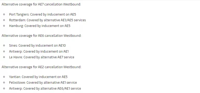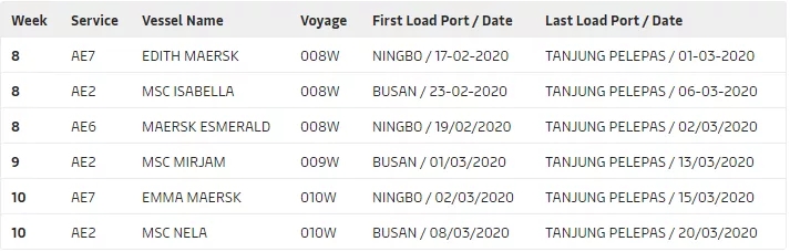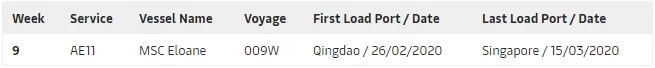 2 月 26 日始發(fā)于中國山東青島港的遠東至地中海(西向)航線 AE11 MSC Eloane 009W 將取消掛靠,停航一周。