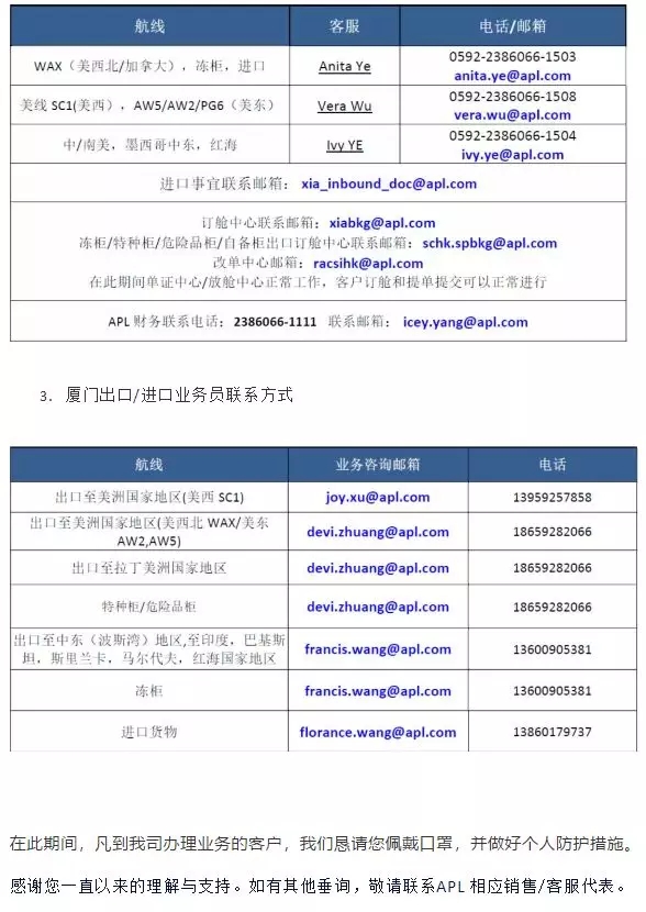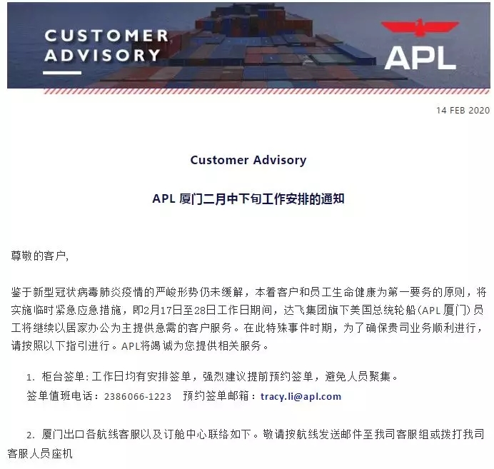APL最新工作安排通知及各地堆場最新開放情況