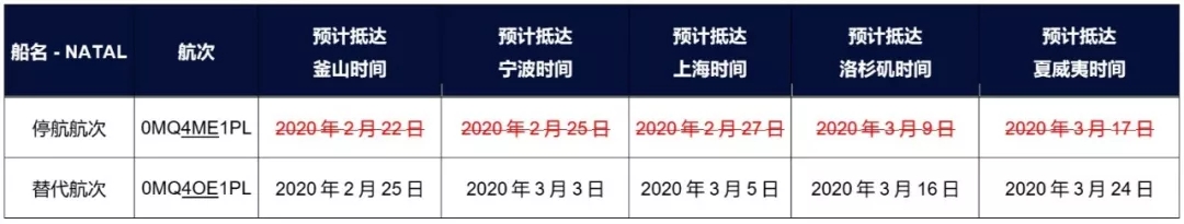 繼我們2020年2月10日發(fā)布的通知,為保證中國春節(jié)假期受冠狀病毒影響延長期間市場的供需平衡,APL 的 Eagle Express X (EXX) 近期停航計劃將新增以下航次: