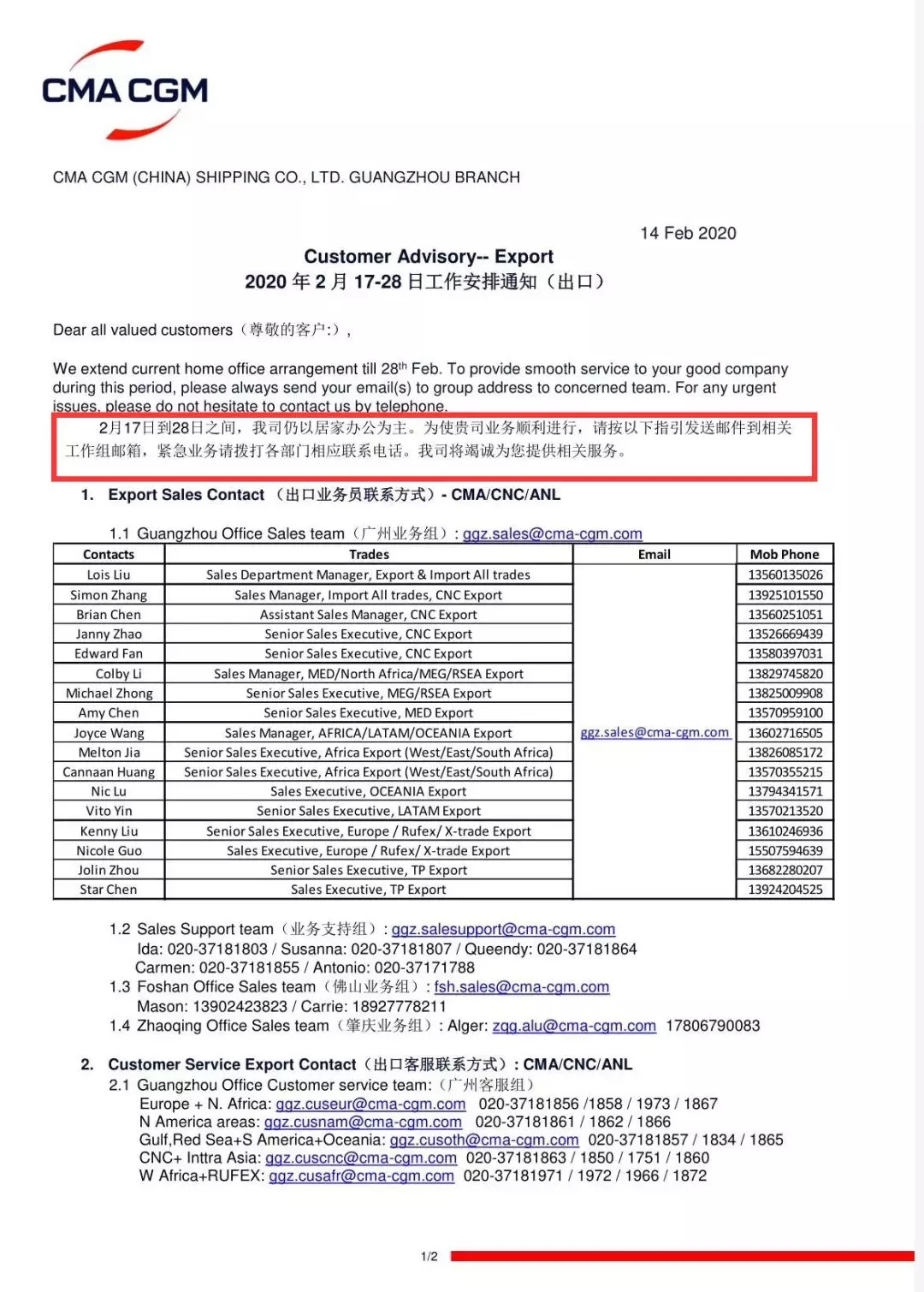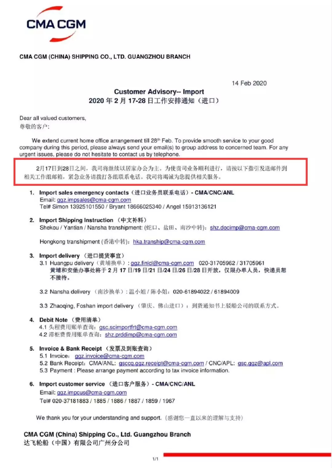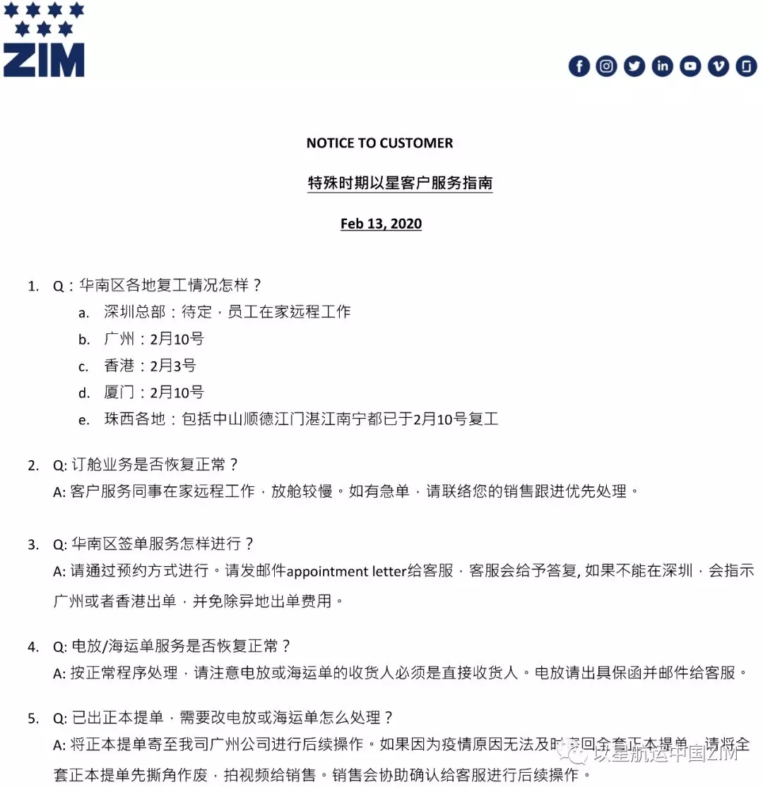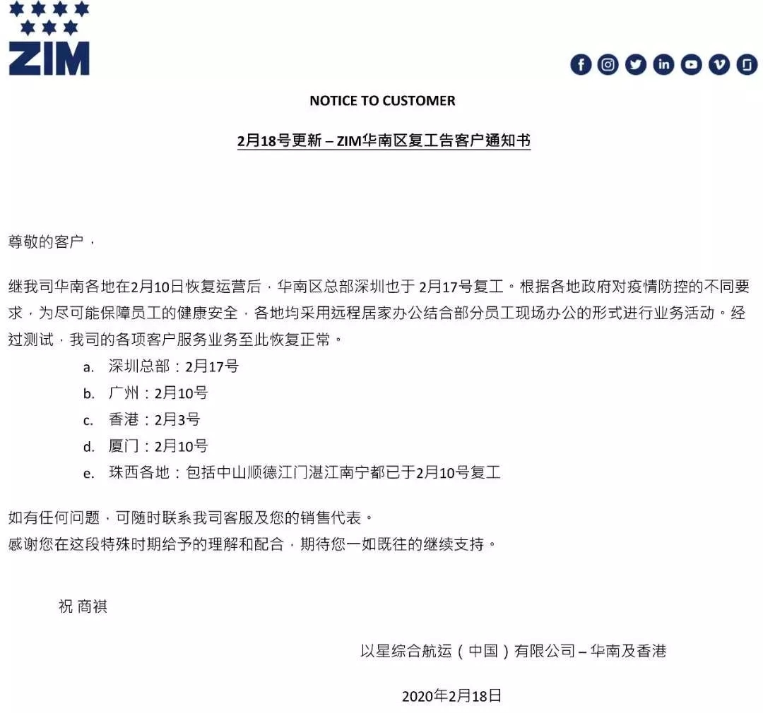 ZIM華南區(qū)復(fù)工告客戶通知書(2020/02/18)
