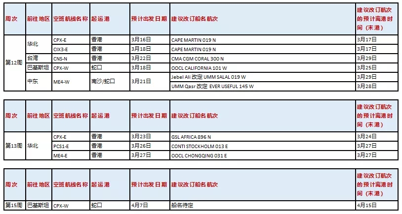 因受春節(jié)假期延期和疫情影響,東方海外針對近期的情況對亞洲、歐洲、美洲,拉丁美洲和非洲等多個航線及港口船期作出了調(diào)整。小編在此整合了從第7周至15周的空班時刻表和備選方案供大家參考以便及時安排出貨等事宜。
