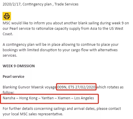 MSC在第9周將再次出現(xiàn)空航,以理順從亞洲到美國西海岸的運力供應(yīng)。