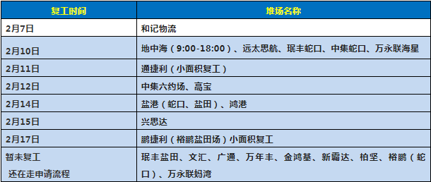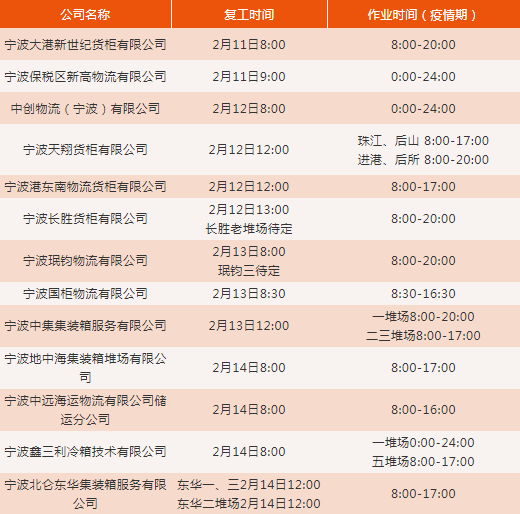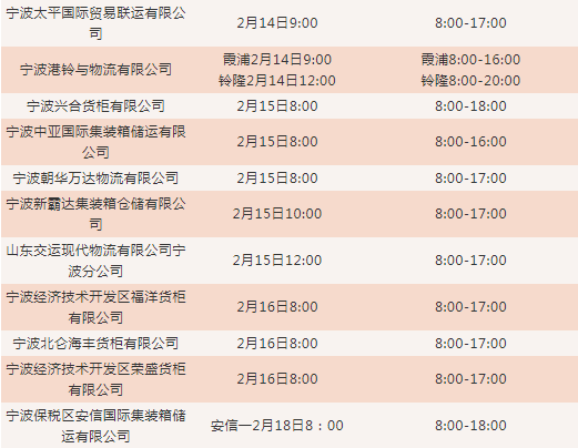 寧波各堆場復(fù)工時間及疫情期間作業(yè)時間: